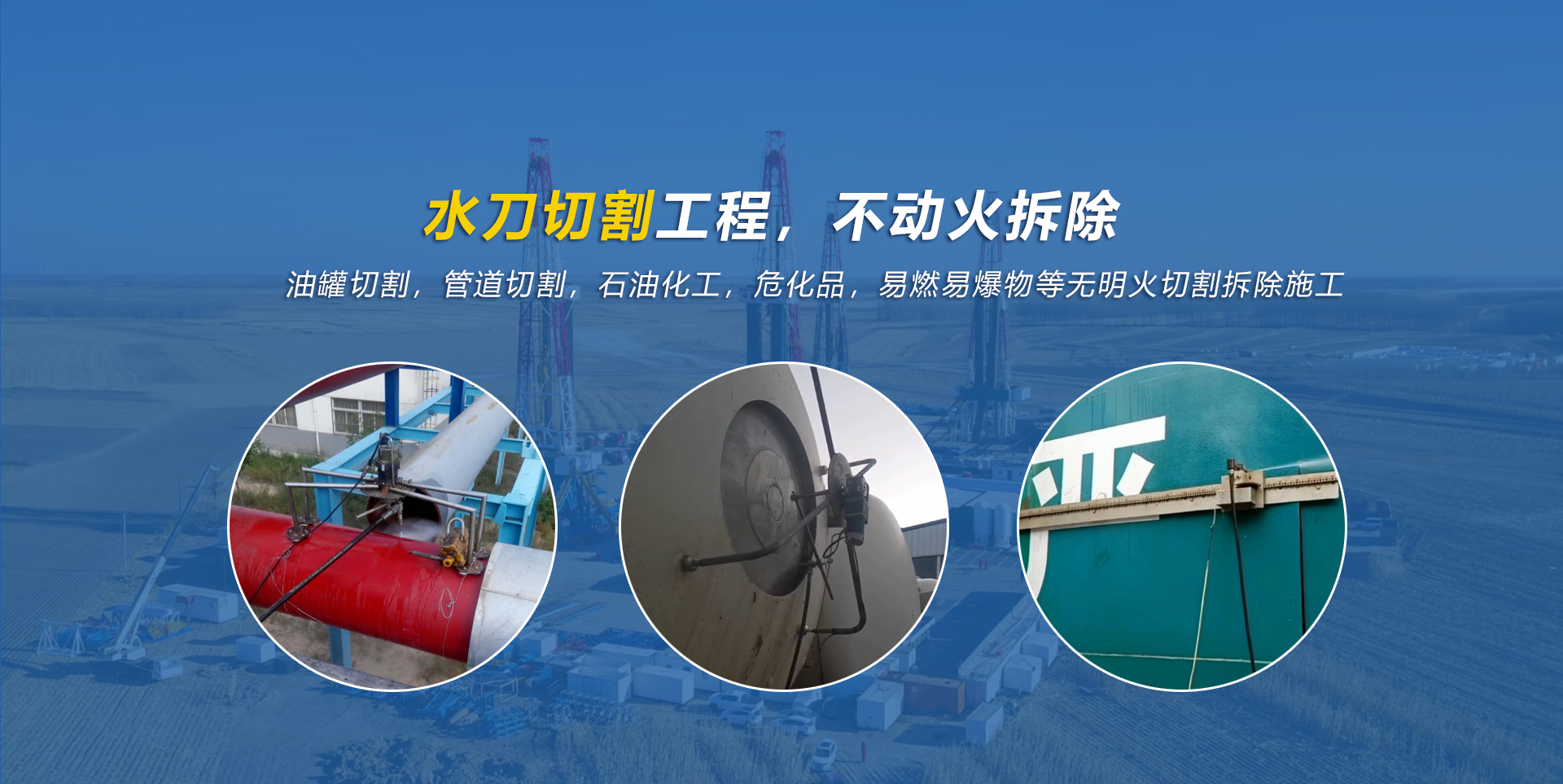 水切設備施工中無火花,無溫度變化,無靜電,免置換吹掃。以水為刀,切除一切安全隱患!承接礦業(yè),化工,石油,燃氣等各種危險品,易燃易爆品的切割,廢舊罐體及管道的拆除,打孔,除銹,混凝土切割等作業(yè)。精準的施工隊伍切割工程遍布全國各地。